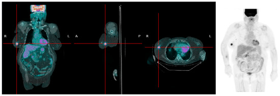 - Boellaard, R.; Delgado-Bolton, R.; Oyen, W.J.; Giammarile, F.; Tatsch, K.; Eschner, W.; Verzijlbergen, F.J.; Barrington, S.F.; Pike, L.C.; Weber, W.A.; et al. Fdg pet/ct: Eanm procedure guidelines for tumour imaging: Version 2.0. Eur. J. Nucl. Med. Mol. Imaging 2015, 42, 328–354. [Google Scholar] [CrossRef] [PubMed]
