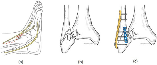 - Choi, B.S.; Lee, S.H.; Kim, M.B.; Lee, Y.H. Mini-Screws-Only Fixation Method for Small Fragments of Medial Malleolus Fractures. Clin. Orthop. Surg. 2021, 13, 307–314. [Google Scholar] [CrossRef]
