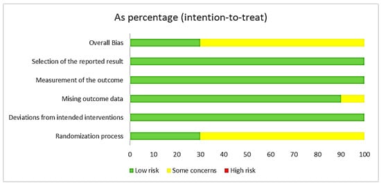 - Sterne, J.A.C.; Savović, J.; Page, M.J.; Elbers, R.G.; Blencowe, N.S.; Boutron, I.; Cates, C.J.; Cheng, H.-Y.; Corbett, M.S.; Eldridge, S.M.; et al. RoB 2: A revised tool for assessing risk of bias in randomised trials. BMJ 2019, 366, l4898. [Google Scholar] [CrossRef] [PubMed]