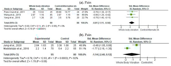 - Wang, W.; Wang, S.; Lin, W.; Li, X.; Andersen, L.L.; Wang, Y. Efficacy of whole body vibration therapy on pain and functional ability in people with non-specific low back pain: A systematic review. BMC Complement Med. Ther. 2020, 20, 158. [Google Scholar] [CrossRef] [PubMed]