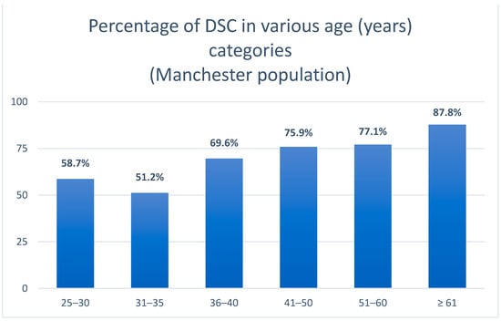 Figure 5a–c illustrate the proportion of DSC in the study population.
