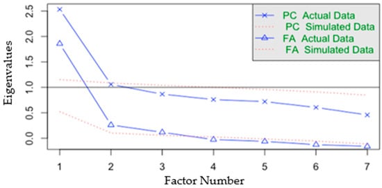 - Hayton, J.C.; Allen, D.G.; Scarpello, V. Factor retention decisions in exploratory factor analysis: A tutorial on parallel analysis. Organ. Res. Methods 2004, 7, 191–205. [Google Scholar] [CrossRef]
