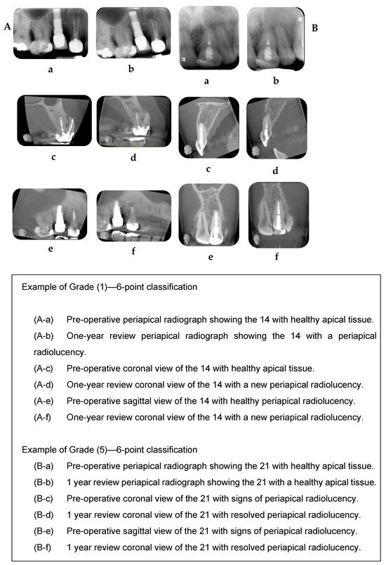 - Patel, S.; Wilson, R.; Dawood, A.; Mannocci, F. The detection of periapical pathosis using periapical radiography and cone beam computed tomography—Part 1: Pre-operative status. Int. Endod. J. 2012, 45, 702–710. [Google Scholar] [CrossRef]