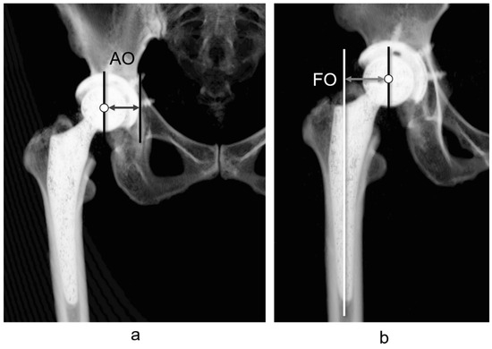 - Lecerf, G.; Fessy, M.H.; Philippot, R.; Massin, P.; Giraud, F.; Flecher, X.; Girard, J.; Mertl, P.; Marchetti, E.; Stindel, E. Femoral offset: Anatomical concept, definition, assessment, implications for preoperative templating and hip arthroplasty. Orthop. Traumatol. Surg. Res. 2009, 95, 210–219. [Google Scholar] [CrossRef] [PubMed]