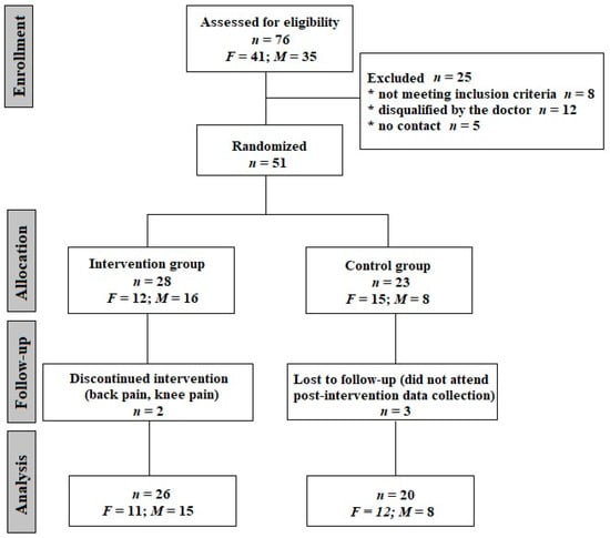 CONSORT flow diagram of the progress though the phases of parallel trial in two groups. F—females; M—males.