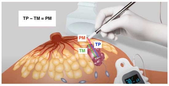The combined technique with US and LOCalizerTM can calculate the exact distance from the margins with the subtraction “TP (Tag-Pencil) − TM (Tag-Margin) = PM (Pencil-Margin)”.