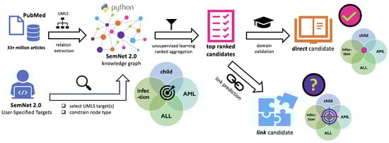 - Kirkpatrick, A.; Onyeze, C.; Kartchner, D.; Allegri, S.; Nakajima An, D.; McCoy, K.; Davalbhakta, E.; Mitchell, C.S. Optimizations for Computing Relatedness in Biomedical Heterogeneous Information Networks: SemNet 2.0. Big Data Cogn. Comput. 2022, 6, 27. [Google Scholar] [CrossRef]