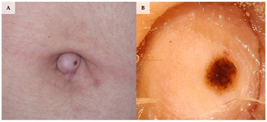 - Campos-Munoz, L.; Quesada-Cortes, A.; Ruiz, E.; Casado, M.; Pizarro, A. Primary melanoma of the umbilicus appearing as omphalitis. Clin. Exp. Dermatol. 2007, 32, 322–324. [Google Scholar] [CrossRef] [PubMed]
