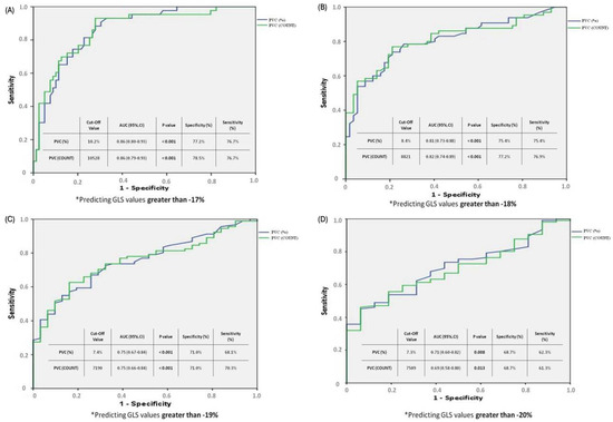 | PVC (%) and LV-GLS | 122 | 0.536 * | <0.001 |