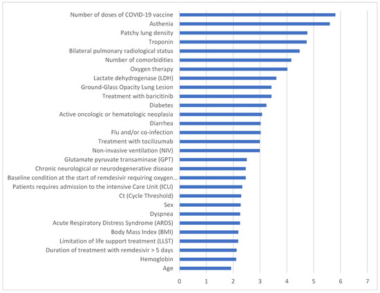 The included laboratory parameters were the PAFI index; FIO2; SpO2; leukocytes; neutrophils; lymphocytes; monocytes: platelets; mean corpuscular volume; hemoglobin; erythrocyte sedimentation rate; CRP; aspartate aminotransferase; alanine aminotransferase; LDH; blood urea nitrogen; serum creatinine; albumin and/or total proteins; total cholesterol; procalcitonin; lactic acid, bicarbonate, and pH; creatine phosphokinase and/or troponin; and D-dimer and ferritin.