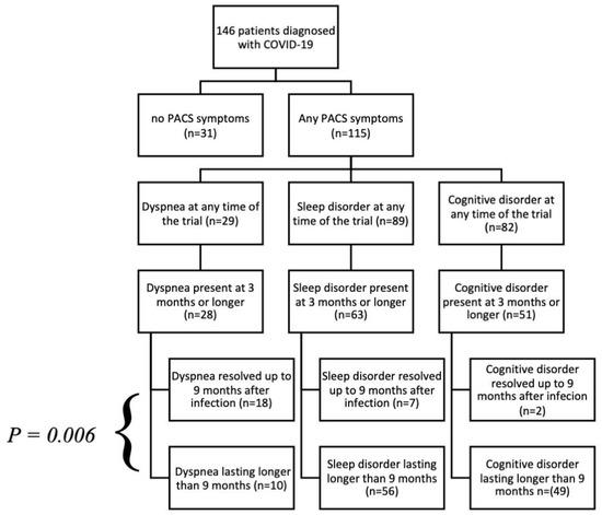 - Those who had a certain symptom that resolved between the 3rd and 9th month vs. those for whom the symptom did not resolve and was reported to be present for more than 9 months.