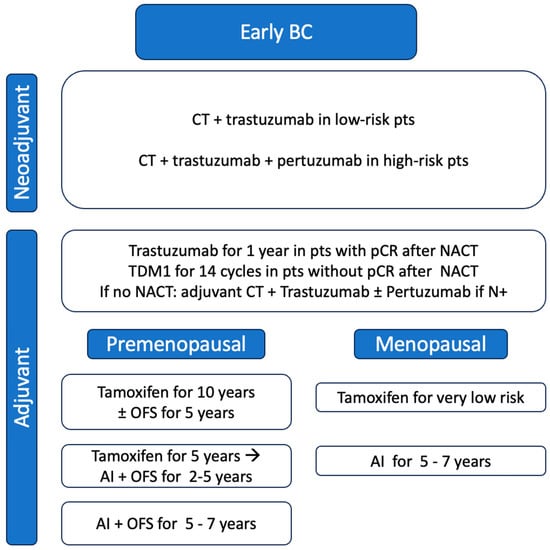 - Buono, G.; Arpino, G.; Del Mastro, L.; Fabi, A.; Generali, D.; Puglisi, F.; Zambelli, A.; Cinieri, S.; Nuzzo, F.; Di Lauro, V.; et al. Extended Adjuvant Endocrine Treatment for Premenopausal Women: A Delphi Approach to Guide Clinical Practice. Front. Oncol. 2022, 12, 1032166. [Google Scholar] [CrossRef] [PubMed]