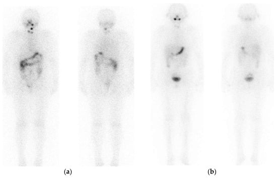 - Alazhrani, A.S.; Bakheet, S.; Mandil, M.A.; Al-Hajjaj, A.; Almahfouz, A.; Al-Haj, A. 123-I Isotope as a Diagnostic Agent in the Follow-Up of Patients with Differentiated Thyroid Cancer: Comparison with Post 131-I Therapy Whole Body Scanning. J. Clin. Endocrinol. Metab. 2001, 86, 5294–5300. [Google Scholar] [CrossRef][Green Version]