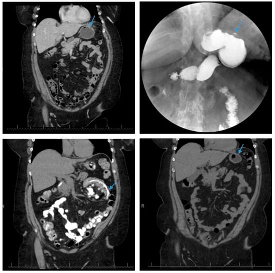 - Levy, J.L.; Levine, M.S.; Rubesin, S.E.; Williams, N.N.; Dumon, K.R. Stenosis of gastric sleeve after laparoscopic sleeve gastrectomy: Clinical, radiographic and endoscopic findings. Br. J. Radiol. 2018, 91, 20170702. [Google Scholar] [CrossRef] [PubMed]