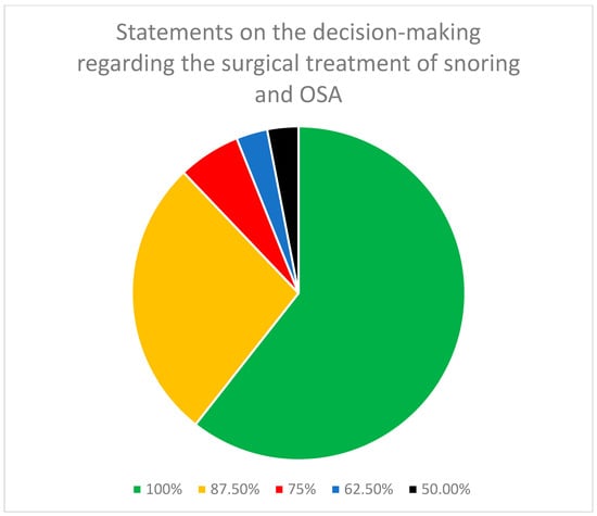 Distribution of the degree of consensus among panelists for the statements on decision-making regarding the surgical treatment of snoring and OSA.