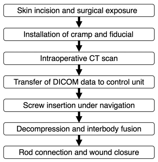 - Oba, H.; Uehara, M.; Ikegami, S.; Hatakenaka, T.; Kamanaka, T.; Miyaoka, Y.; Kurogouchi, D.; Fukuzawa, T.; Mimura, T.; Tanikawa, Y.; et al. Tips and pitfalls to improve accuracy and reduce radiation exposure in intraoperative CT navigation for pediatric scoliosis: A systematic review. Spine J. 2023, 23, 183–196. [Google Scholar] [CrossRef]