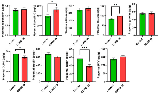 - Jiang, S.; Teague, A.M.; Tryggestad, J.B.; Lyons, T.J.; Chernausek, S.D. Fetal circulating human resistin increases in diabetes during pregnancy and impairs placental mitochondrial biogenesis. Mol. Med. 2020, 26, 76. [Google Scholar] [CrossRef]