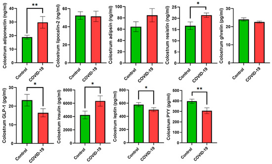 - Guo, J.; Tan, M.; Zhu, J.; Tian, Y.; Liu, H.; Luo, F.; Wang, J.; Huang, Y.; Zhang, Y.; Yang, Y.; et al. Proteomic Analysis of Human Milk Reveals Nutritional and Immune Benefits in the Colostrum from Mothers with COVID-19. Nutrients 2022, 14, 2513. [Google Scholar] [CrossRef] [PubMed]