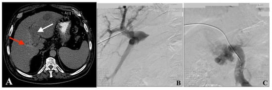 This study’s results showed that the EP-RFA procedure led to an improvement in liver function in around 70% of cases, accompanied by low AEs. Prior studies also reported the excellent safety of the procedure, with an increase in PV velocity after PVR-EPRFA-ST [10,11,12,13,14,15,23] (Table 3). PV stenting was reported to be safe with excellent technical success, resulting in the relief of portal obstruction with a post-procedure PV patency greater than 13 months, enabling patients to pursue additional treatments such as TACE, TARE, surgery, and chemotherapy. A retrospective study on 31 patients with HCC and PVTT divided the patients into two subgroups of PVR-EPRFA-ST vs. PVR-EPRFA without portal stenting. They revealed that EP-RFA was safe and had an excellent feasibility for patients with PVTT, without additional clinical benefit for portal vein stenting [10]. In our study, there were several advantages of using EPRFA-ST, including the partial ablation of the PVTT with partial or complete PV recanalization, decreasing portal hypertension with decreased esophageal variceal pressure, improving both the overall liver function and patients’ candidacy for palliative or potentially curative locoregional treatments.