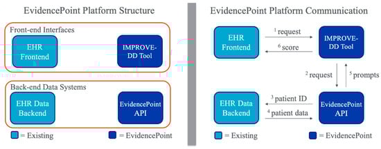 - Solomon, J.; Dauber-Decker, K.; Richardson, S.; Levy, S.; Khan, S.; Coleman, B.; Persaud, R.; Chelico, J.; King, D.; Spyropoulos, A.; et al. Integrating Clinical Decision Support into Electronic Health Record Systems Using a Novel Platform (EvidencePoint): Developmental Study. JMIR Form. Res. 2023, 7, e44065. [Google Scholar] [CrossRef] [PubMed]