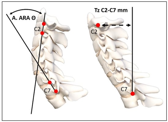 - Martini, M.L.; Neifert, S.N.; Chapman, E.K.; Mroz, T.E.; Rasouli, J.J. Cervical Spine Alignment in the Sagittal Axis: A Review of the Best Validated Measures in Clinical Practice. Global Spine J. 2021, 11, 1307–1312. [Google Scholar] [CrossRef]