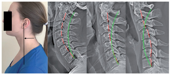 - Pivotto, L.R.; Navarro, I.J.R.L.; Candotti, C.T. Radiography and photogrammetry-based methods of assessing cervical spine posture in the sagittal plane: A systematic review with meta-analysis. Gait Posture 2021, 84, 357–367. [Google Scholar] [CrossRef]