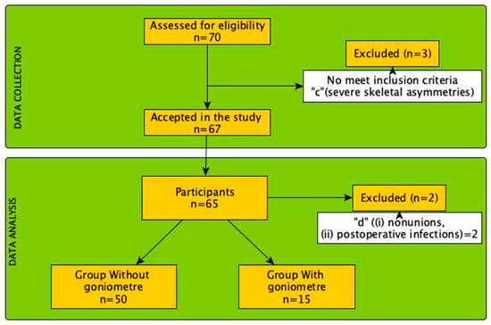 This prospective multicenter study was conducted with patients diagnosed with primary metatarsalgia, consecutively scheduled for unilateral DICMO surgery. This study was approved by the Research Ethics Committee of Catholic University of Valencia (UCV/2022-2023/094) in accordance with the ethical guidelines of the Declaration of Helsinki [23]. In addition, the design and progression of participants through the trial were conducted in accordance with the STROBE guidelines [24]. All participants were recruited from two clinics and operated on by the same surgical team. Before surgery procedures, all participants provided their written informed consent [23,24].