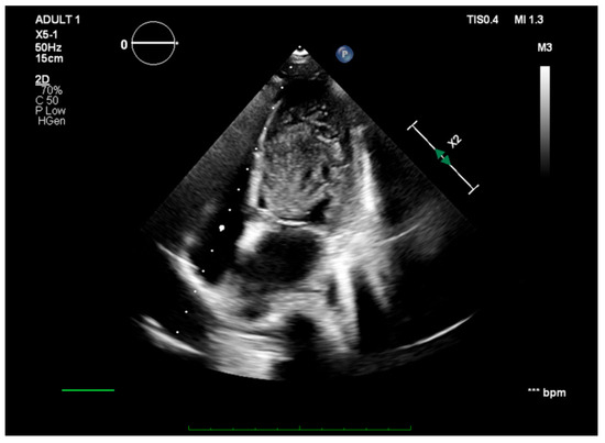 The preferred diagnostic method is usually transthoracic echocardiography, but thoracic computed tomography might be useful as well. Utilizing cardiac ultrasonography, myxomas can be seen as solitary hyperechoic masses of different sizes and localizations, and they are usually mobile and have a peduncular insertion [8,10,11]. A differential diagnosis with an intracavitary thrombus is mandatory, as it might determine the therapeutic strategy.