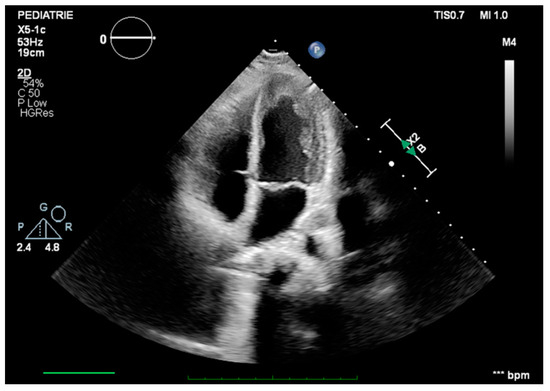 Similarly to adult patients, when it comes to children, primary cardiac tumors have a scarce incidence of only 0.5% [1,2,3]. Most of them are primary tumors, originating from the heart, and histologically are proven to be benign. In contrast to the adult population however, where the most common types of cardiac tumors are myxomas, in the pediatric population, this type of tumor is rarely seen, with rhabdomyomas being the most frequently diagnosed [4]. However, cases of childhood myxomas have been published in [3,4,5]. When present, myxomas are typically localized in the left atrium [6], but there are few cases of left ventricular myxomas present in the literature [3,6,7,8,9].