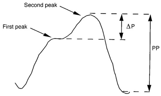 The augmentation index is defined as the difference between the second and first systolic peaks expressed as a percentage of the pulse pressure. ΔP: difference of pressure peaks; PP: pulse pressure [].