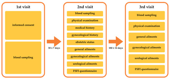 The patients’ medical history, including comorbidities, was collected during the second visit. Questions were asked, especially about new general symptoms that appeared after the COVID-19 disease. Special attention was paid to gynecological diseases, menstrual disorders, obstetric status, and types of delivery. Data on urological ailments, especially urinary incontinence symptoms, was also gathered. The previously collected information was confirmed during the third visit, as were the changes between the second and third visits.