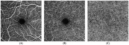- Chu, Z.; Gregori, G.; Rosenfeld, P.J.; Wang, R.K. Quantification of Choriocapillaris with Optical Coherence Tomography Angiography: A Comparison Study. Am. J. Ophthalmol. 2019, 208, 111–123. [Google Scholar] [CrossRef]