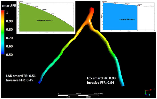 - Siogkas, P.K.; Lakkas, L.; Sakellarios, A.I.; Rigas, G.; Kyriakidis, S.; Stefanou, K.A.; Anagnostopoulos, C.D.; Clemente, A.; Rocchiccioli, S.; Pelosi, G.; et al. SmartFFR, a New Functional Index of Coronary Stenosis: Comparison with Invasive FFR Data. Front. Cardiovasc. Med. 2021, 8, 714471. [Google Scholar] [CrossRef] [PubMed]
