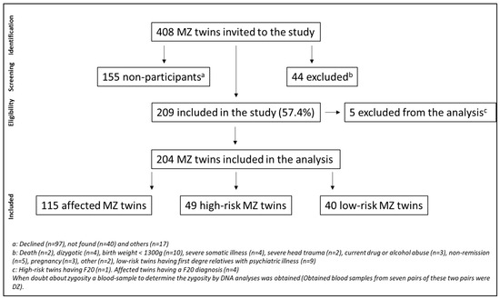 - Ottesen, N.M.; Meluken, I.; Scheike, T.; Kessing, L.V.; Miskowiak, K.W.; Vinberg, M. Clinical Characteristics, Life Adversities and Personality Traits in Monozygotic Twins with, at Risk of and without Affective Disorders. Front. Psychiatry 2018, 9, 401. [Google Scholar] [CrossRef] [PubMed]
