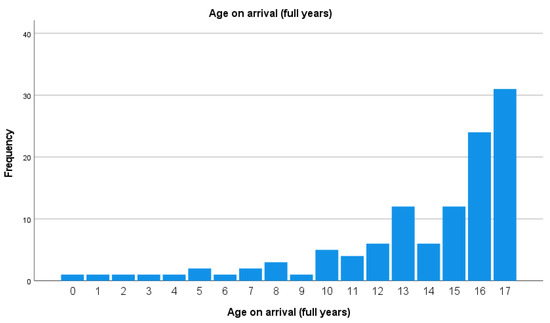 The group characteristics are shown in Table 1. The majority of patients were aged 12–17 years (79.8%), with a mean of 14.3 years. The group of 0–5-year-olds consisted of only seven children. The age distribution is shown in Figure 1.