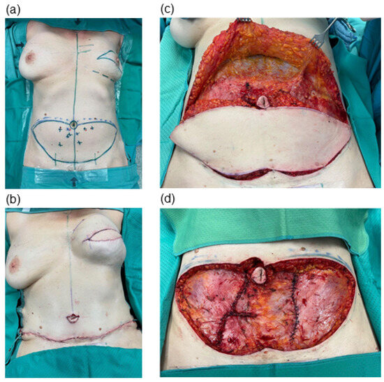 Abdominal-based flaps, particularly the deep inferior epigastric perforator (DIEP) flap, have become the standard approach for autologous breast reconstruction following nipple-sparing mastectomy (NSME) or skin-sparing mastectomy (SSME) procedures [1,2,3]. This technique offers several notable advantages, including an enhanced quality of life and greater patient satisfaction when compared to implant-based approaches [4,5,6]. However, the trade-offs are longer surgical duration, extended hospital stay and the necessity to sacrifice an additional donor site. Considering this additional effort, our objective should be to minimize the risks associated with the additional surgery for the patients and continuously strive to enhance the surgical outcome.
