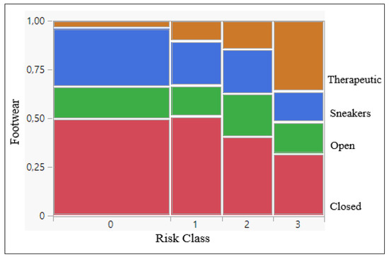 Footwear contingency analysis by risk classes (p < 0.0001).