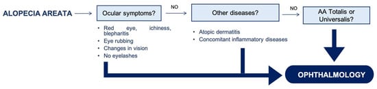 Proposed algorithm for the referral of alopecia areata patients to the Ophthalmology Department.