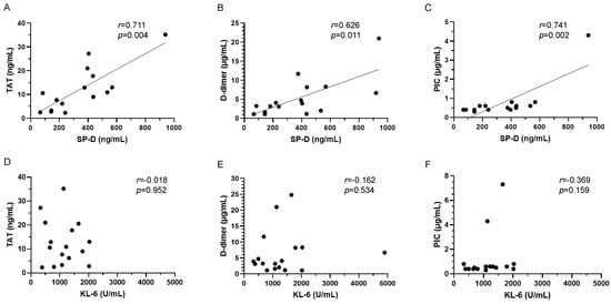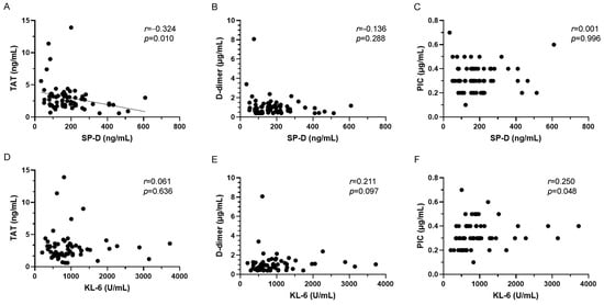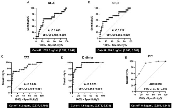 APA StyleTakeshita, Y., To, M., Kurosawa, Y., Furusho, N., Kinouchi, T., Tsushima, K., Tada, Y., To, Y., & Sakao, S. (2024). Usefulness of Combined Measurement of Surfactant Protein D, Thrombin–Antithrombin III Complex, D-Dimer, and Plasmin–α2 Plasmin Inhibitor Complex in Acute Exacerbation of Interstitial Lung Disease: A Retrospective Cohort Study. Journal of Clinical Medicine, 13(8), 2427. https://doi.org/10.3390/jcm13082427