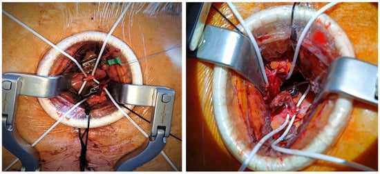 - Balkhy, H.H.; Nathan, S.; Arnsdorf, S.E.; Krienbring, D.J. Right internal mammary artery use in 140 robotic totally endoscopic cor-onary bypass cases: Toward multiarterial grafting. Innovations 2017, 12, 9–14. [Google Scholar] [PubMed]