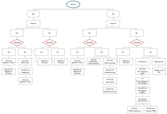 - Oliverio, J.; Gero, E.; Whitacre, K.L.; Rankin, J. Wound Care Algorithm: Diagnosis and Treatment. Adv. Skin Wound Care 2016, 29, 65–72. [Google Scholar] [CrossRef]