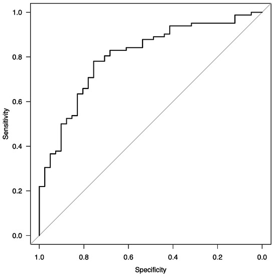 The ROC curve of the final multivariable model is presented in Figure 1.