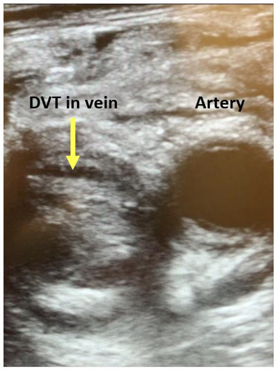 - Barrosse-Antle, M.E.; Patel, K.H.; Kramer, J.A.; Baston, C.M. Point-of-Care ultrasound for bedside diagnosis of lower extremity DVT. Chest 2021, 160, 1853–1863. [Google Scholar] [CrossRef]