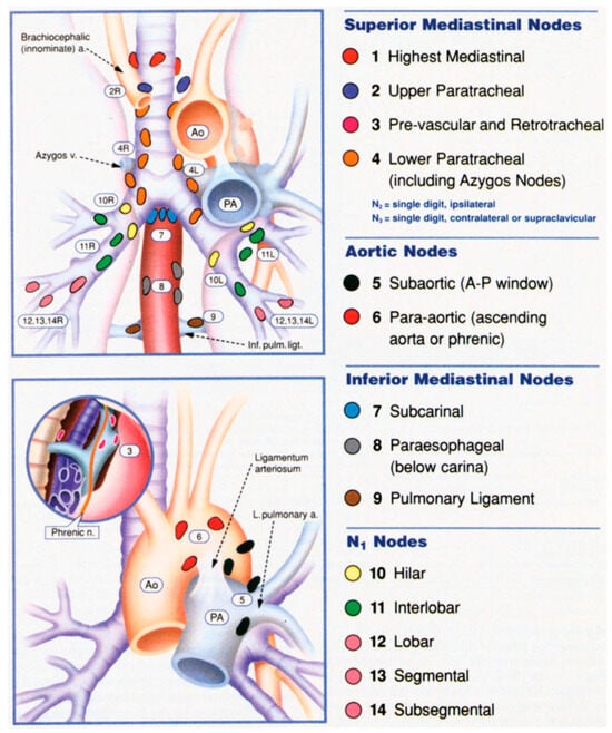 - Mountain, C.F.; Dresler, C.M. Regional lymph node classification for lung cancer staging. Chest 1997, 111, 1718–1723. [Google Scholar] [CrossRef] [PubMed]