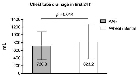 Postoperative bleeding amount in the first 24 h. Data are presented as mean with SD in columns. Abbreviation: AAR—replacement of the ascending aorta.