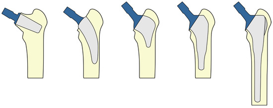 - Falez, F.; Casella, F.; Papalia, M. Current Concepts, Classification, and Results in Short Stem Hip Arthroplasty. Orthopedics 2015, 38, S6–S13. [Google Scholar] [CrossRef] [PubMed]
