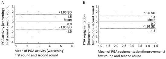 3.3. Reliability of the PGA Activity (Worsening) and PGA Repigmentation (Improvement) Score