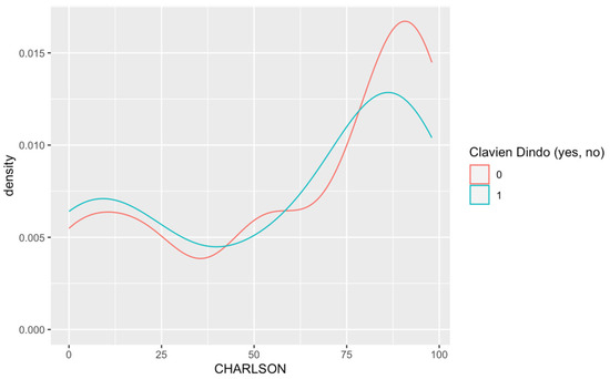 Our analysis showed that the Charlson Comorbidity Index (CCI) does not significantly predict the occurrence or severity of complications within 30 days post-surgery. Both the occurrence of complications and their severity were not statistically influenced by the CCI, with odds ratios of 1.30 (p = 0.14) and 1.09 (p = 0.54), respectively. This suggests that the CCI, despite its broad usage in predicting long-term mortality, may not be a reliable indicator of short-term postoperative complications in this patient population (Table 12) (Figure 1).