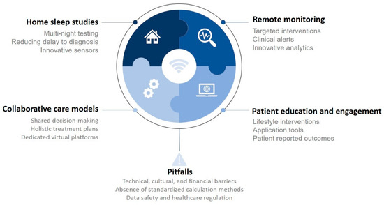 - Verbraecken, J. Telemedicine in Sleep-Disordered Breathing. Sleep. Med. Clin. 2021, 16, 417–445. [Google Scholar] [CrossRef] [PubMed]