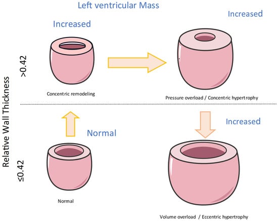 - Nwabuo, C.C.; Vasan, R.S. Pathophysiology of Hypertensive Heart Disease: Beyond Left Ventricular Hypertrophy. Curr. Hypertens. Rep. 2020, 22, 11. [Google Scholar] [CrossRef] [PubMed]
